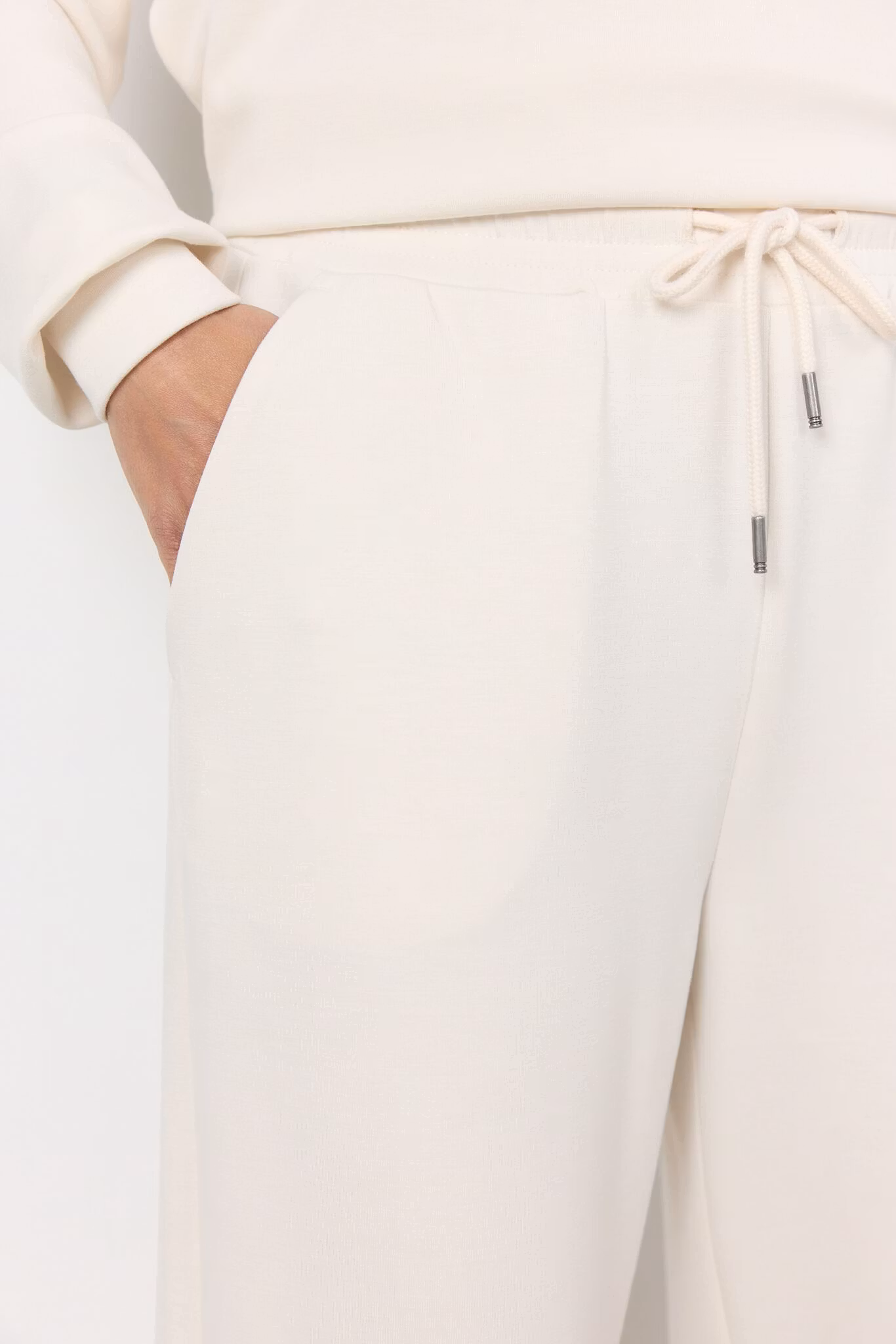Så mjuka och sköna byxor med raka ben och fickor. Dragsko i midjan. Mixa och matcha med sweatshirt och top i samma material och färg.